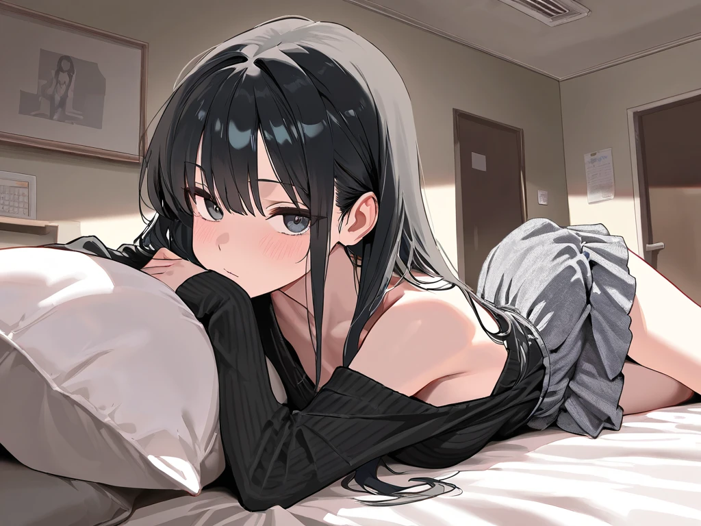 ◆黒ニット×グレーフリルのギャル感