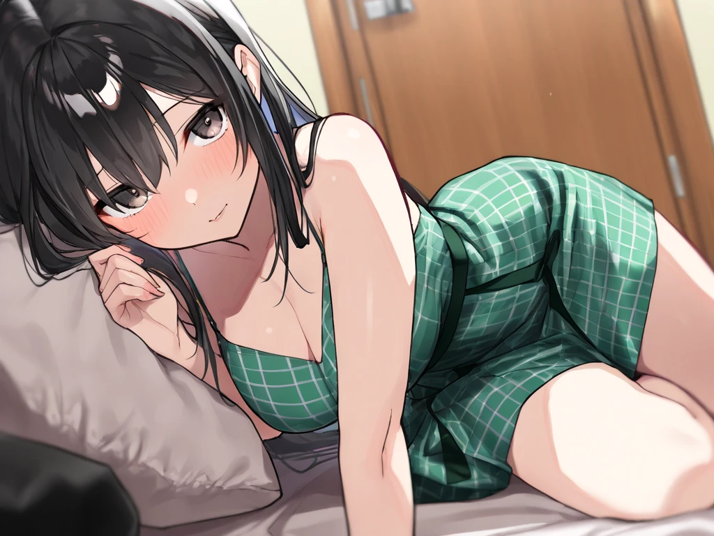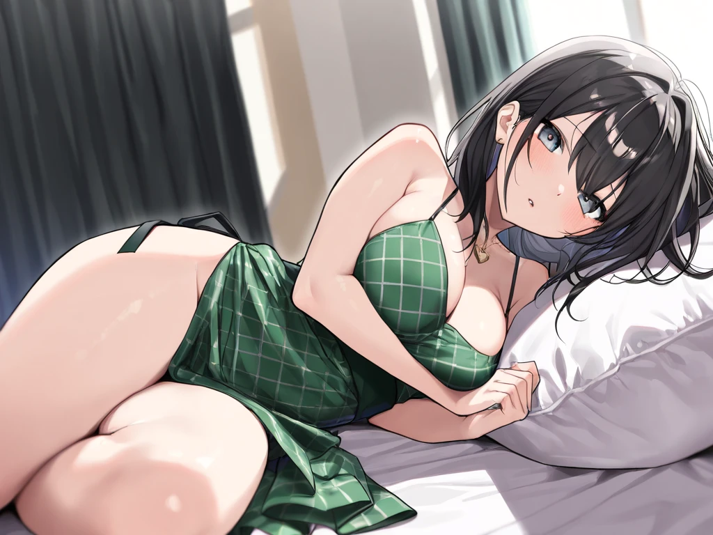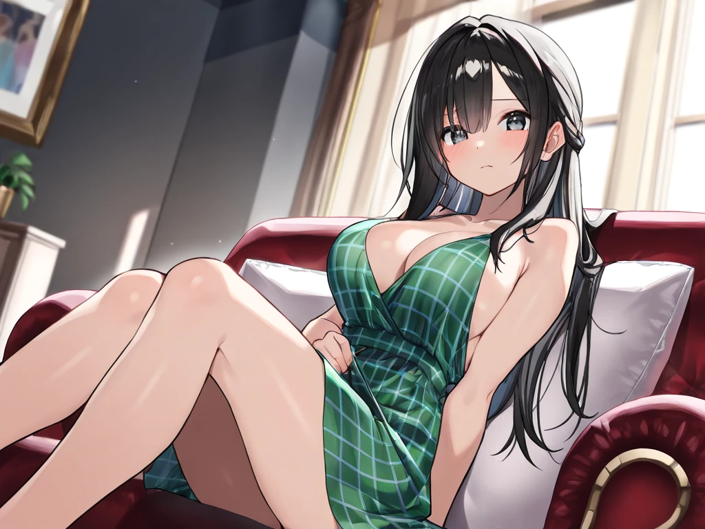 緑のチェックロングワンピース、