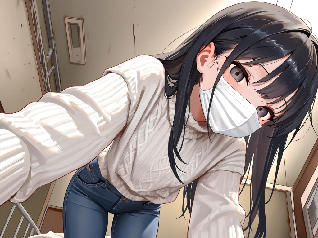 服装白いニットに、ジーンズ。できればスカートで来てほしかったが、ジーンズも良く似合っている。